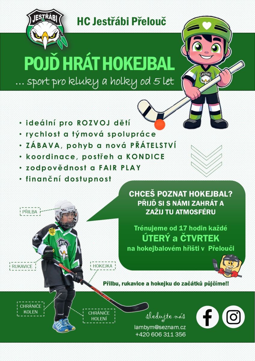 Ahoj všichni! Hokejbalový klub Jestřábi Přelouč otevírá dveře novým nadějím a pořádá nábor!