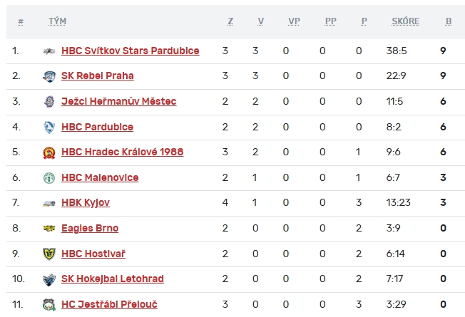 Tabulka - starší žáci
