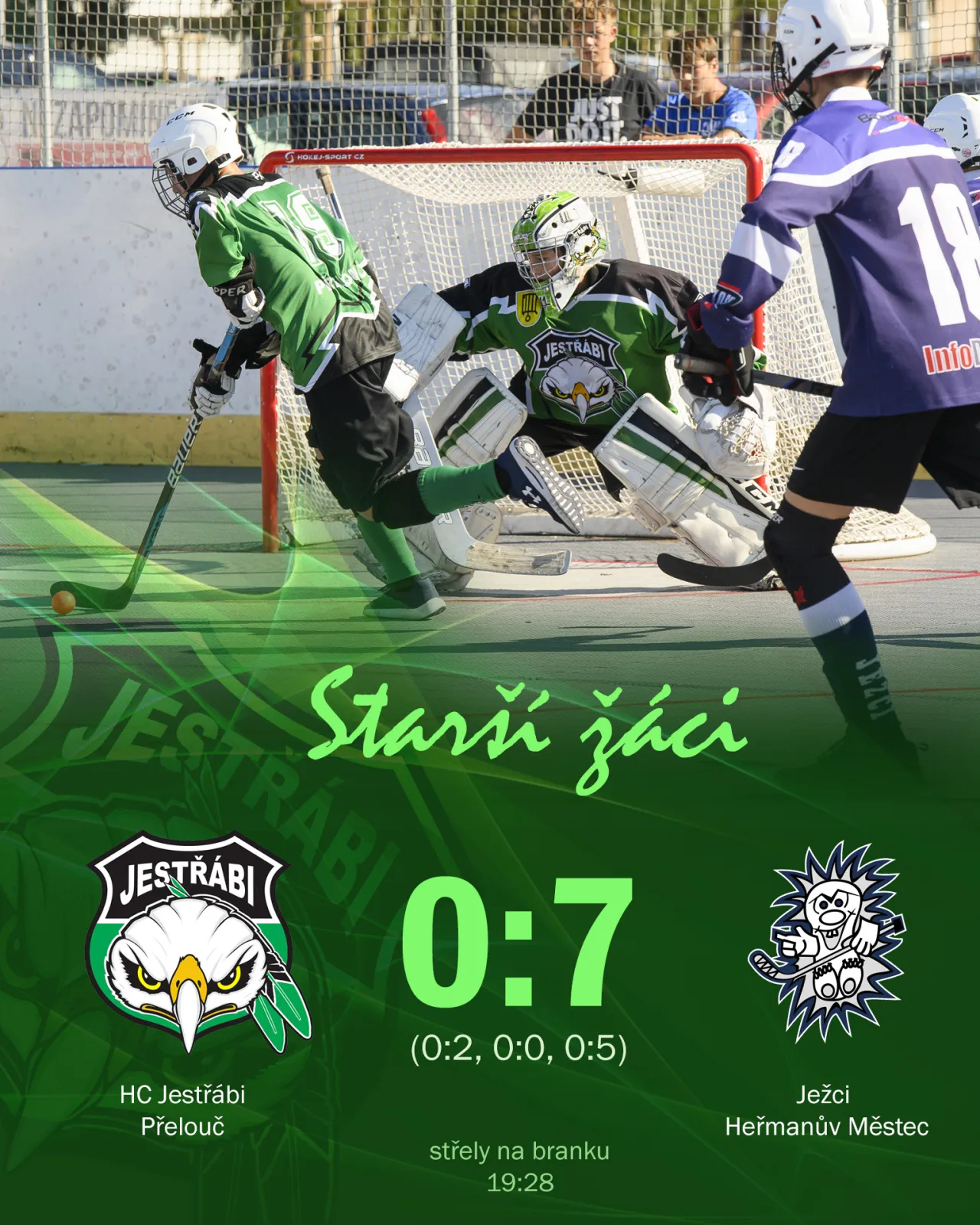 Starší žáci drželi v nedělním zápase krok s Ježky po většinu zápasu, ale soupeř přehrál nakonec náš marodkou oslabený tým doplněný mladšími žáky hlavně ve 3. třetině.