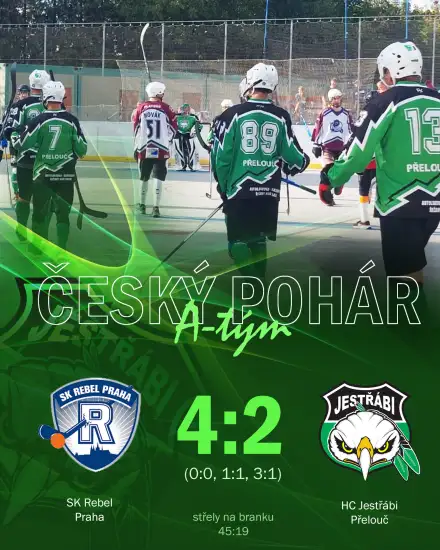 Gratulujeme Rebelům k postupu, ale Jestřábi se nemají zač stydět, jelikož zápas byl z naší strany plný obětavosti, nasazení a skvělého hokejbalu.