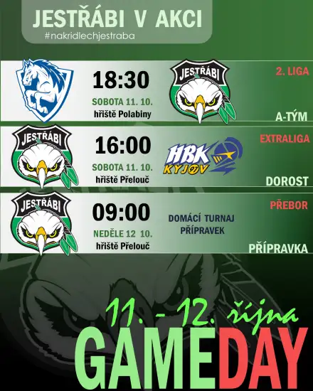 | 9:00 | HC Jestřábi Přelouč – "zelený tým" vs HBC Hradec Králové 1988 |