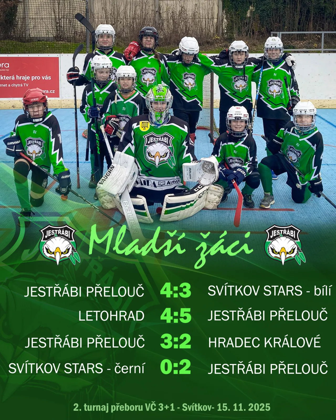 Tým mladších žáků, doplněný o několik hráčů přípravky, se v sobotu 15. 11. účastnil ve Svítkově turnaje přeboru, který se hrál v netradičním formátu 3+1. Celý tým předvedl skvělý výkon plný nasazení i týmového ducha a přivezl domů 4 výhry ze 4 zápasů! Skvělé je, že střelecky se prosadili jak kmenoví hráči týmu, tak i hráči přípravky, což je skvělá deviza do dalších soubojů.