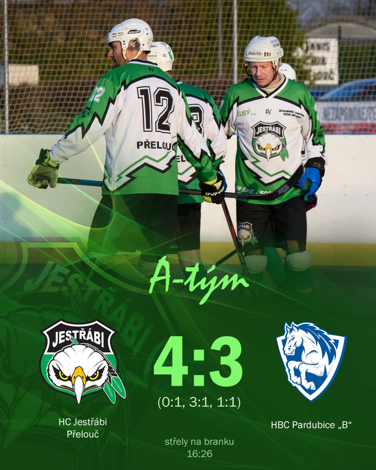 Po první třetině jsme prohrávali 0:1 a soupeř vedení ještě navýšil na začátku druhé třetiny, když i celkově byl v zápase aktivnější 16:26 na střely. Ale Jestřábi postupně převzali iniciativu. Ve druhé části otočili vývoj třemi brankami a týmovým výkonem položili základ k důležitému vítězství. Vyrovnaný průběh třetí třetiny pak znamenal radost Jestřábů z cenné výhry 4:3.