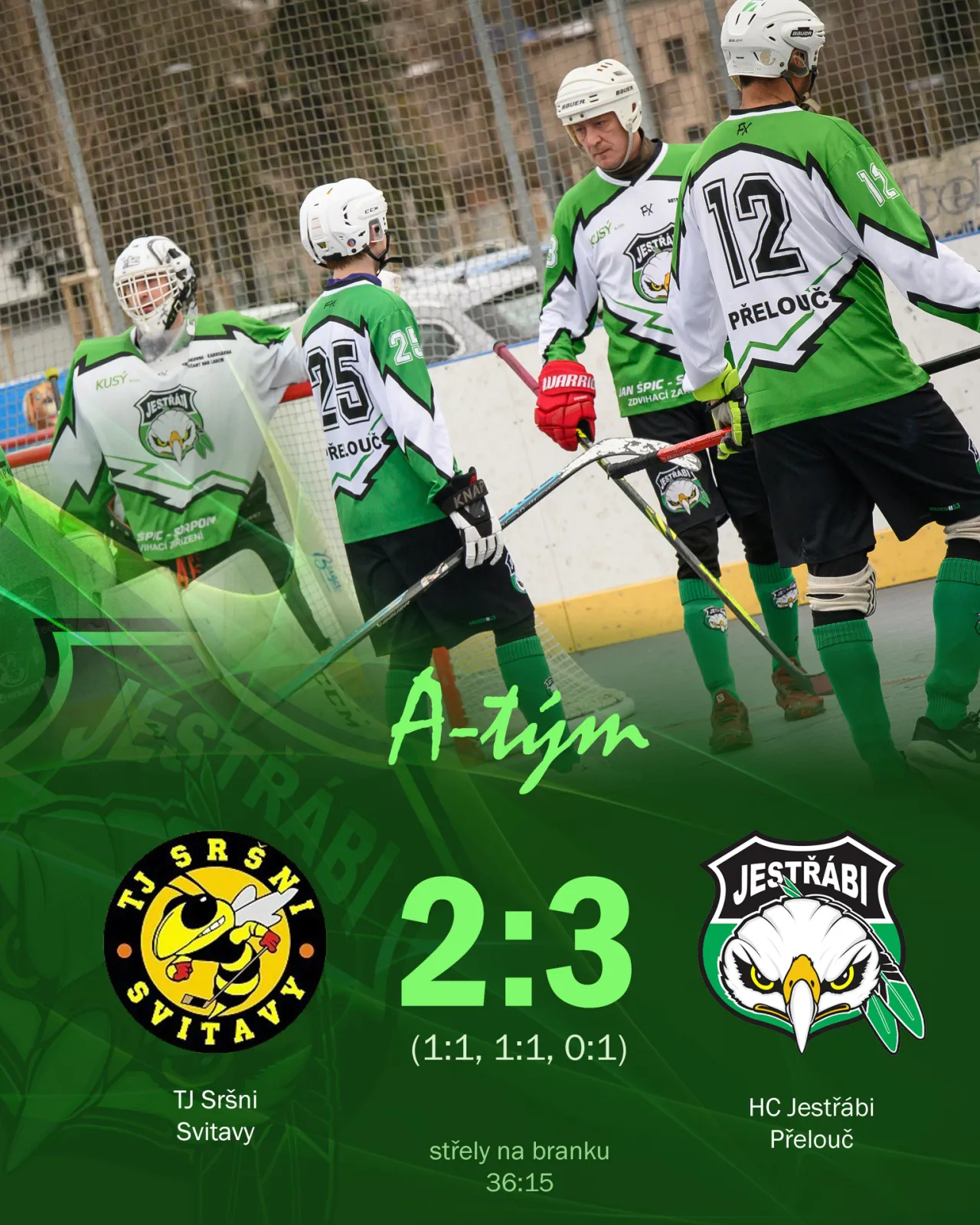 Poslední zápas základní části čekal náš A-tým ve Svitavách, kde jsme předvedli skvělý týmový a bojovný výkon. I když nás soupeř přestřílel 36:15, jsou to právě Jestřábi, kdo se raduje z výhry 2:3 a bere 3 body. Po brankově vyrovnaném zápase vystřelil výhru Jestřábů Zbyněk Čapek v sedmé minutě třetí třetiny po asistencích Šmída a Vorby.