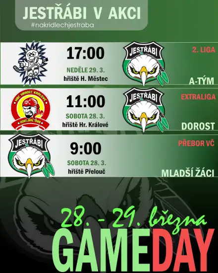 V neděli 29.3. hrajeme na hřišti Ježků Heřmanův Městec od 17:00h.